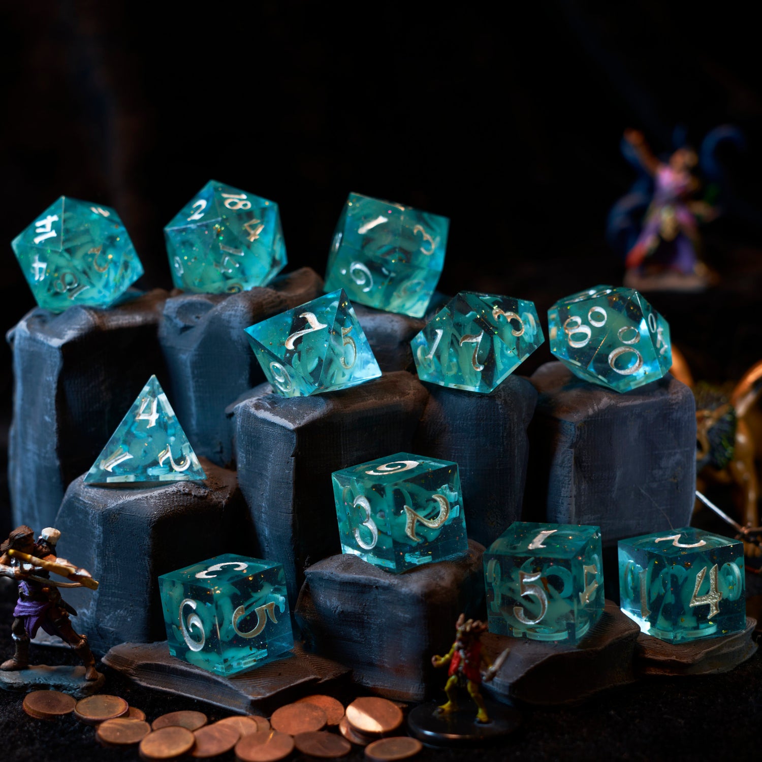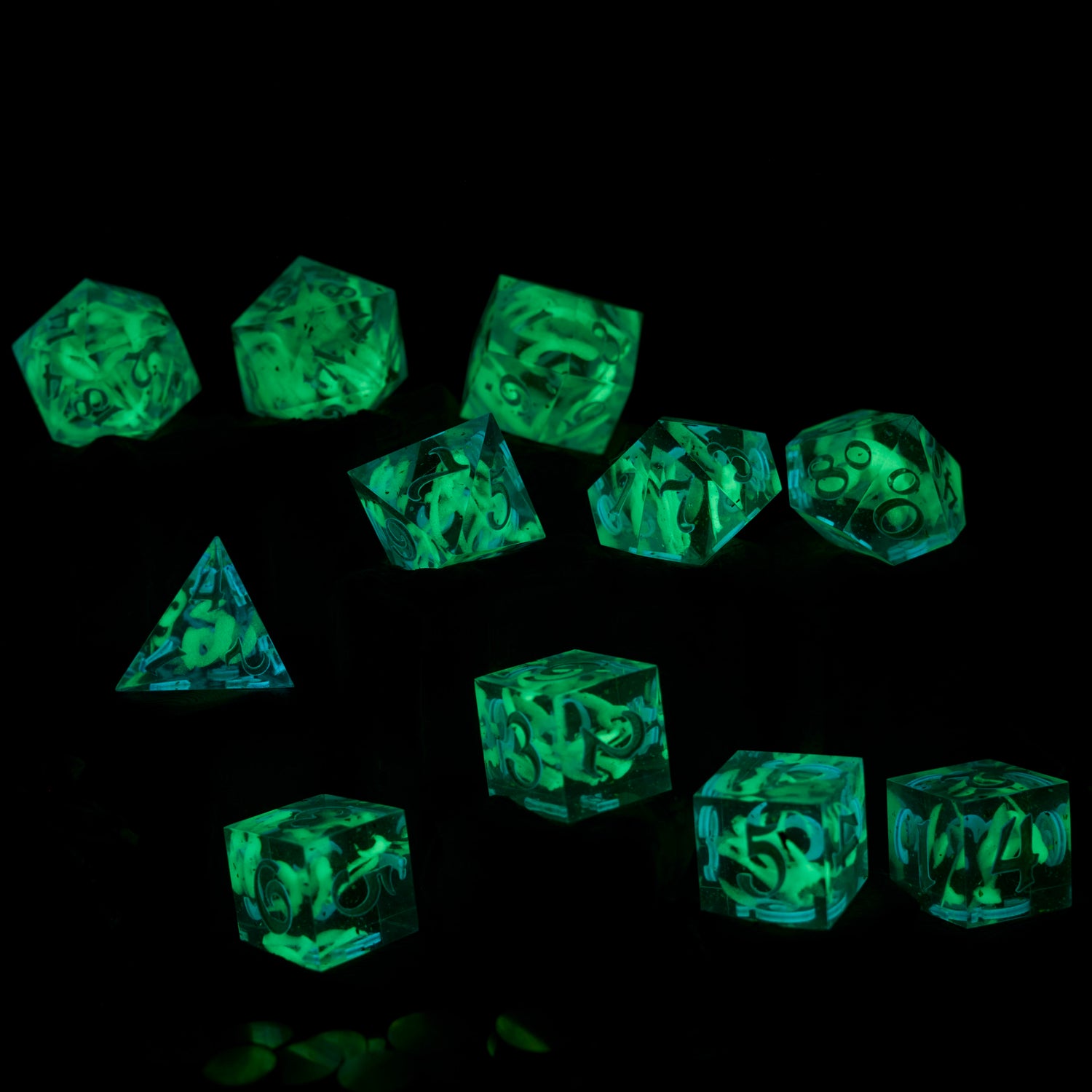 Set of 11 Sharp Edge Resin Dice or Single Custom D20